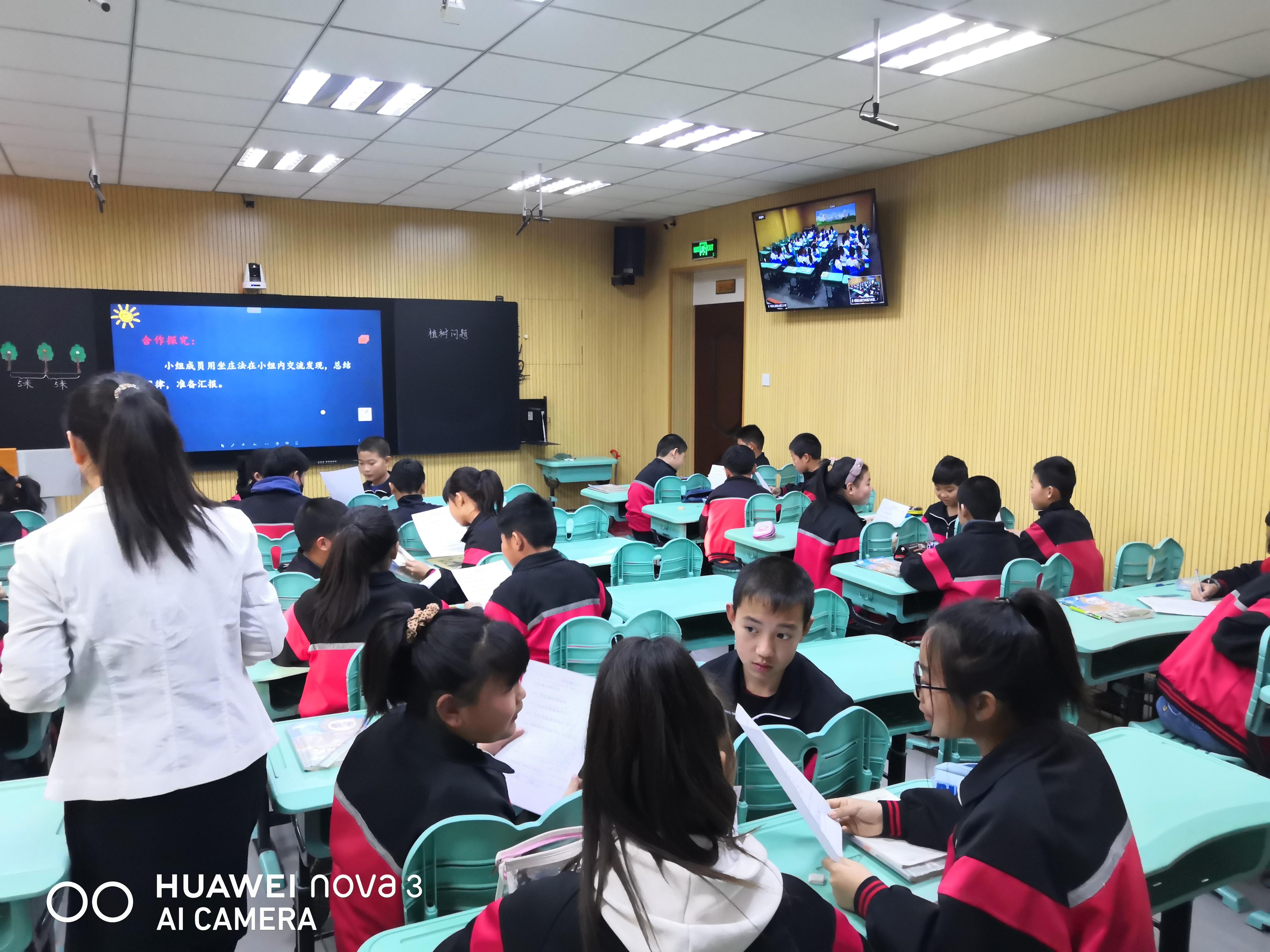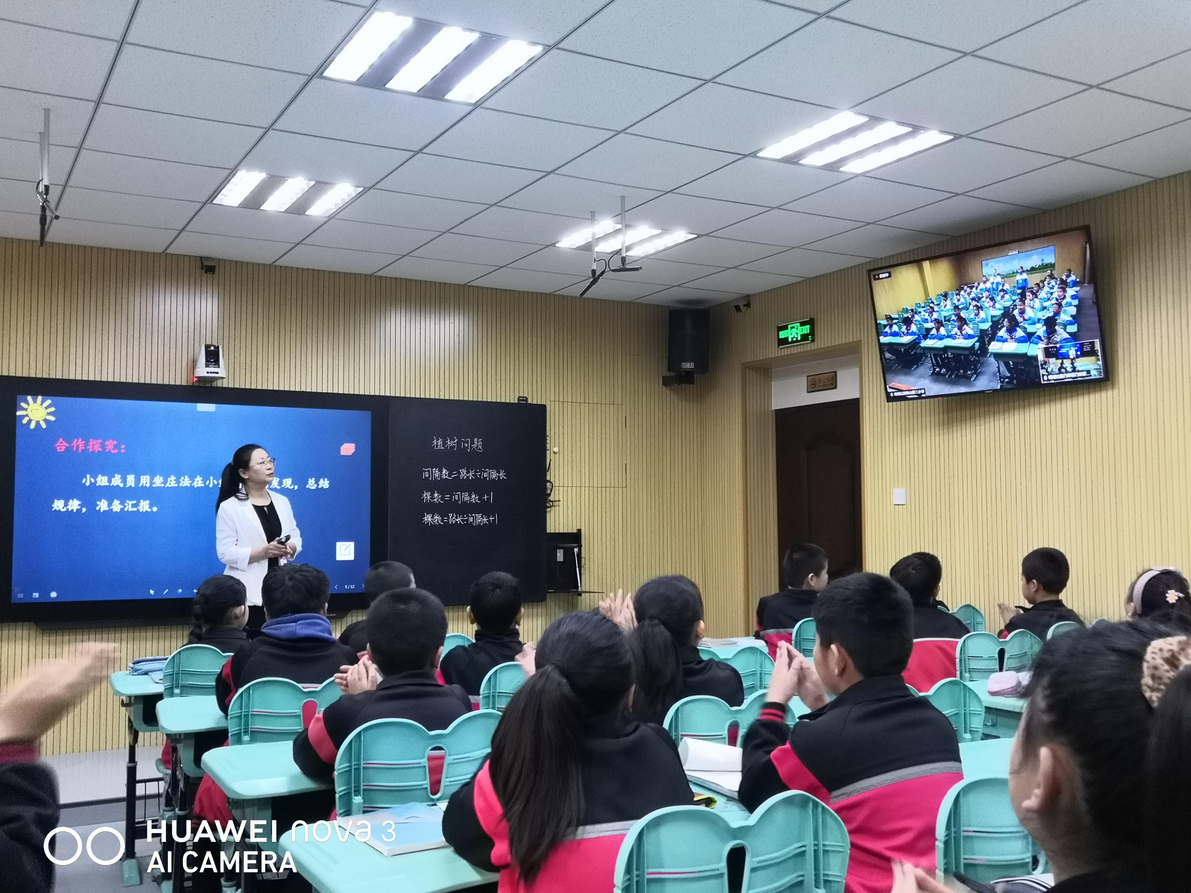錄播教室里,杜桂英老師與孫穎麗老師通過錄播教室同頻互動系統對兩個學校的學生共同組織五年級數學課《植樹問題》。兩所學校,兩位老師,兩個班的學生,通過線上教育手段的支持完成了一堂溝通無障礙的跨校課程。整個上課過程畫面清楚,聲音清晰,乃林蒙小的教師能隨時請錦山三小的學生回答問題,錦山三小的學生也能與乃林蒙小的學生進行課堂互動。