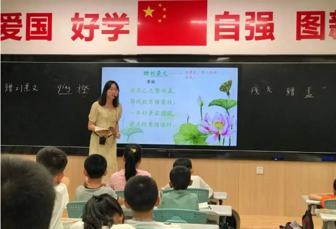 老師利用歐帝智慧教師黑板以寓教于樂的方式帶領著學生學習古詩,通過插圖以及對字詞的詳細解釋,學生們將故事與現實景物與情境聯系到了一起,加深了理解了詩文的意境和理趣。