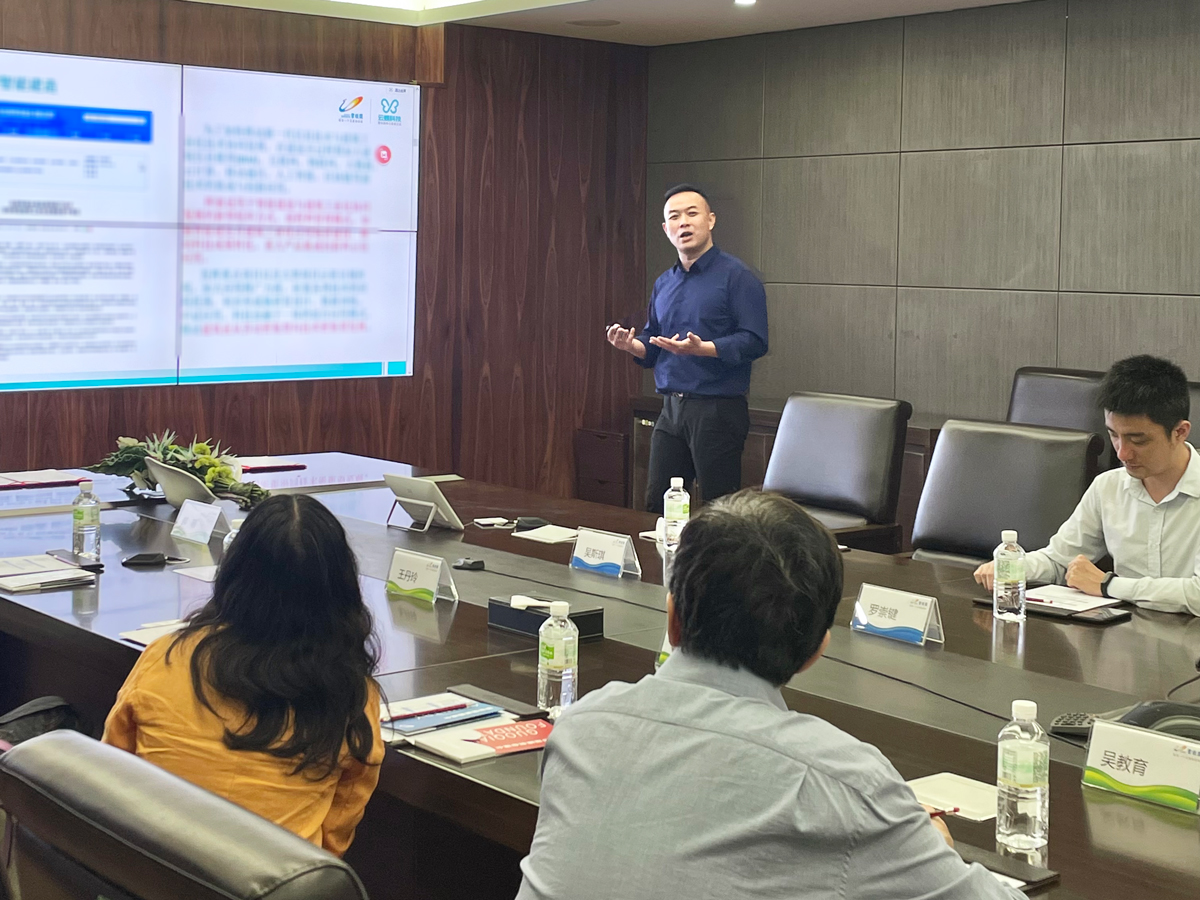 在隨后的座談交流環節上,云蝶科技營銷中心副總經理沈勇簡要介紹了云蝶科技的發展定位、核心業務以及在產教融合方面致力于打造“產學研用”一體的教育科技融合新模式,并表示后續還將積極擴大與學校的合作范圍,為人才發展提供支持和幫助。