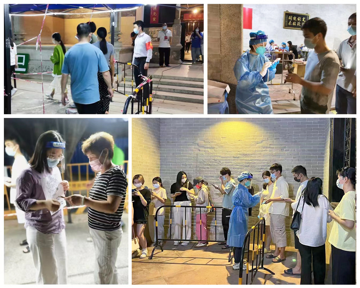 為應對近期突發的本土疫情,支援海珠區大規模核酸篩查工作,云蝶科技黨支部發動黨員員工和青年義工組建云蝶防疫志愿服務隊,與海珠區投資促進局等部門工作人員一起,在保障自身安全的前提下,融入抗疫一線,參與疫情防控志愿服務工作。