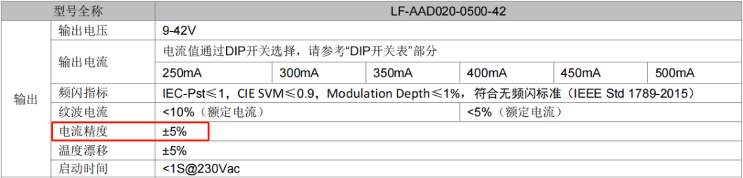 輸出電流的上下浮動值,精度越高波動范圍越小,批量時所有燈具的亮度一致性也就會更好。