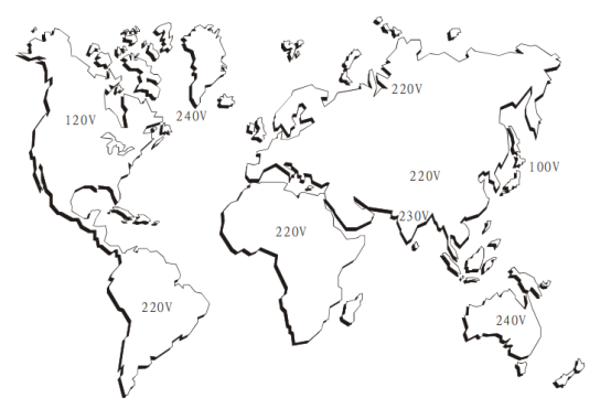 注:同一國家的輸入電壓因不同城市或不同地域可能不同,如美國、巴西