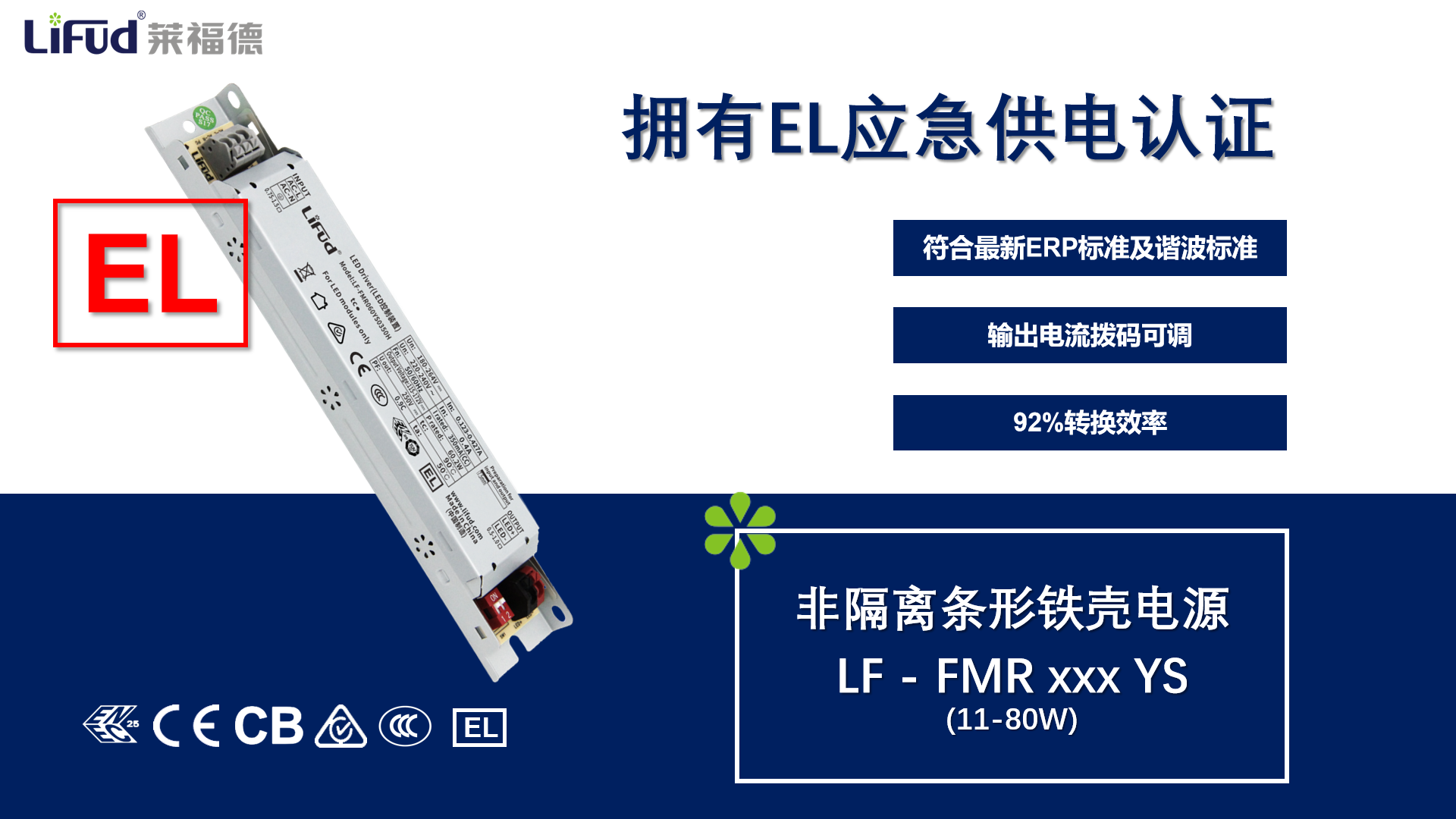 如果您燈具需要在應(yīng)急供電狀態(tài)下使用,不要錯過這款EL認(rèn)證電源;