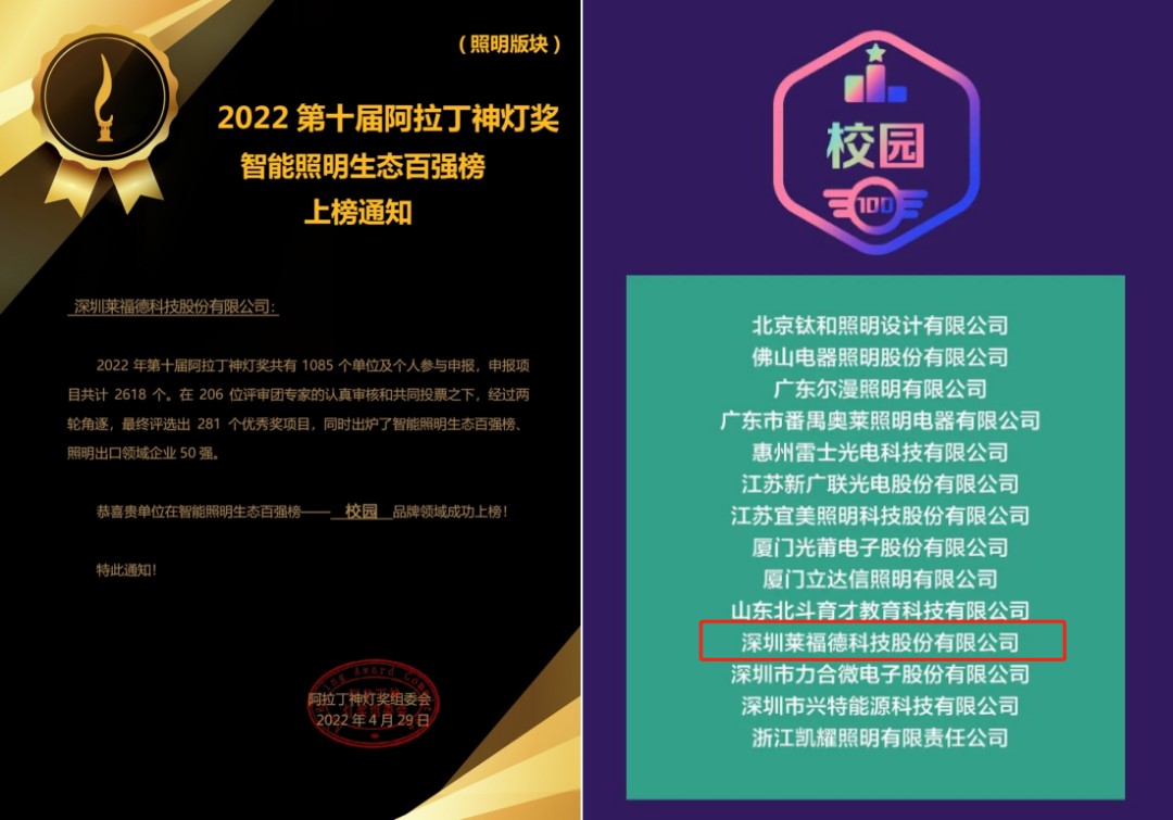 萊榮譽(yù) | 2022阿拉丁神燈獎(jiǎng)智能百?gòu)?qiáng)之校園品牌唯一電源企業(yè)獲獎(jiǎng)?wù)?/h1>
