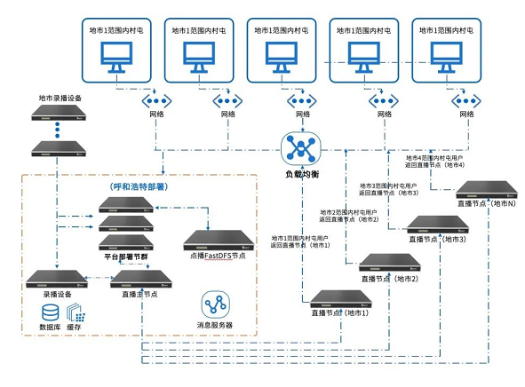 云視界,心互聯。內蒙古廣電通過在自治區及各地市配置的11臺銳取視頻會議錄播,實現55路會議的并發錄制,同時應用銳取視頻資源中心軟件,以分布式部署的模式,根據各地區的視頻觀看流量進行數據分發,滿足內蒙古自治區對大規模視頻會議直播并發的需求。