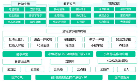 小魚易連聯(lián)合麒麟軟件推出的教育行業(yè)全融合視頻互動平臺解決方案,以銀河麒麟操作系統(tǒng)為支點,以小魚易連云視頻互動技術(shù)為核心,全面支持國產(chǎn)軟硬件設(shè)備,具備更優(yōu)良、更安全的系統(tǒng)運行環(huán)境,為教育新基建提供堅實可信的基礎(chǔ)支撐。