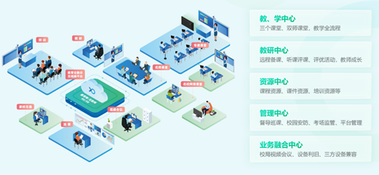 打通課前、課中、課后全流程,為師生構(gòu)建1+N超大規(guī)�;咏虒W(xué)、互動雙師課堂、常態(tài)化云錄播教室、精品錄播教室、停課不停學(xué)等應(yīng)用場景,并通過全融合云視頻平臺進(jìn)行不同品牌、系統(tǒng)的全面互通,解決信息孤島痛點,擴(kuò)大優(yōu)質(zhì)資源覆蓋。