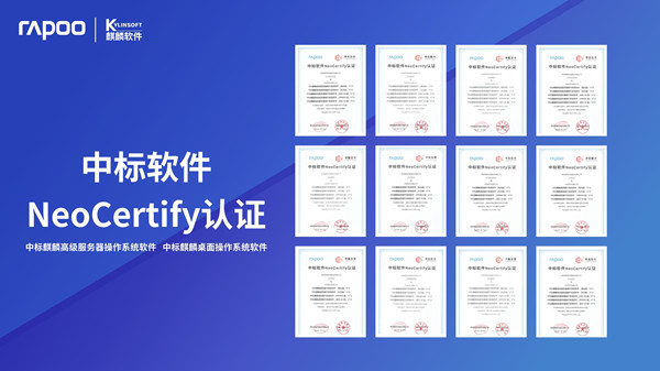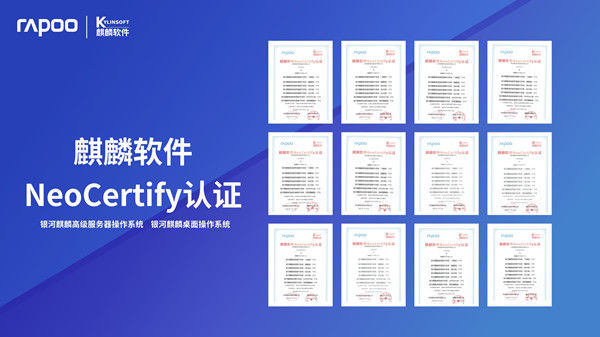 2022年,加入星閃聯(lián)盟,布局升級(jí)無(wú)線技術(shù),實(shí)現(xiàn)全局優(yōu)化與迭代。以產(chǎn)品研發(fā)為核心,以市場(chǎng)需求為指引,賦能產(chǎn)品,打造生態(tài),通過(guò)共同嚴(yán)格測(cè)試,雷柏科技辦公外設(shè)產(chǎn)品完成麒麟軟件NeoCertify認(rèn)證、中標(biāo)軟件NeoCertify認(rèn)證、統(tǒng)信軟件產(chǎn)品互認(rèn)證明。桌面類(lèi)、服務(wù)器類(lèi)等操作系統(tǒng)整體運(yùn)行穩(wěn)定,達(dá)到通用兼容性要求及性能、可靠性要求,滿(mǎn)足用戶(hù)的關(guān)鍵性應(yīng)用需求。