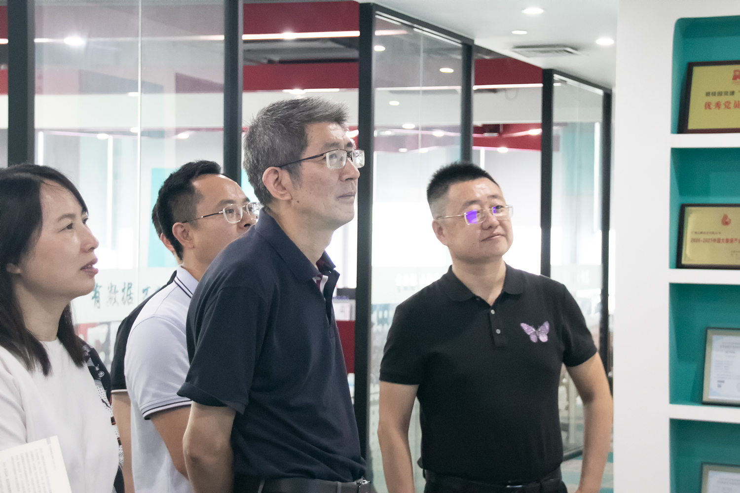 錢立雄一行率先參觀了云蝶科技展廳,詳細了解企業發展歷程與技術優勢,并親身體驗了云蝶科技文本采集終端系統,對柔性數字化技術賦能教育、鄉村、建工等領域的價值表示認同。