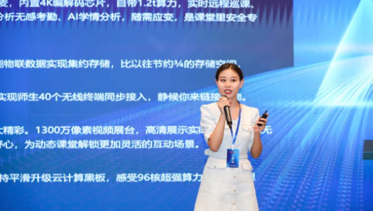最后,歐帝科技資深講師張倩瑞介紹了歐帝2022新品——第五代智慧教室互動黑板,它采用了歐帝自主研發的主板,定義了智慧黑板設計與工藝結構的新高度。由于創造性的設計理念,第五代黑板在書寫體驗、視覺感受和日常教學中都展示出了非凡的性能,堪稱經典之作。