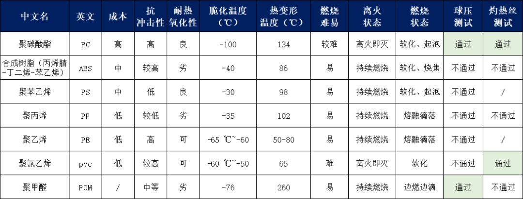 以下為部分工程塑料性能對比,基本囊括了市面塑殼電源的外殼材料類型,一起來了解各類型塑料的特點及應用吧!