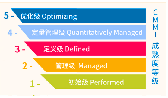 CMMI即軟件能力成熟度集成模型,由美國(guó)國(guó)防部委托CMU-SEI(卡耐基梅隆大學(xué)的軟件工程協(xié)會(huì))共同開(kāi)發(fā)和研制,是衡量軟件企業(yè)能力成熟度和項(xiàng)目管理水平的行業(yè)標(biāo)準(zhǔn),也是目前世界公認(rèn)的規(guī)格最高、難度最大、最具權(quán)威性的軟件能力評(píng)估體系。CMMI將能力成熟度分為五個(gè)級(jí)別:初始級(jí)、管理級(jí)、定義級(jí)、定量管理級(jí)、優(yōu)化級(jí)。CMMI成熟度5級(jí)為優(yōu)化級(jí),即最高等級(jí)。