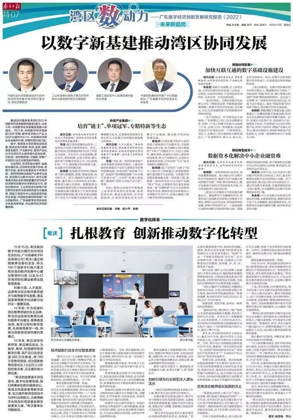 其中,作為數(shù)字化樣本,《南方日?qǐng)?bào)》在“灣區(qū)數(shù)動(dòng)力”特07版聚焦希沃,對(duì)希沃深耕教育、助力教育數(shù)字化轉(zhuǎn)型進(jìn)行全方位觀察。以下為報(bào)道原文: