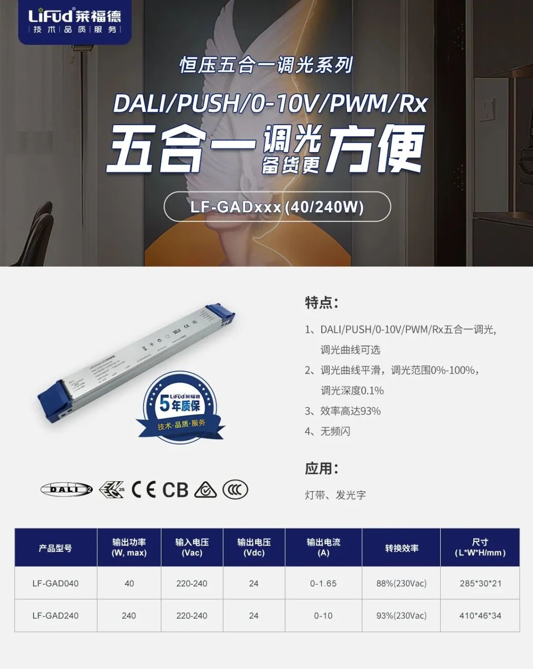 如何讓常規恒壓電源秒變調光/調光調色/RGB/RGBW/RGBCW可調電源?0-10V雙色溫電源效果如何?關注萊福德2023新品發布,了解更多智能系統資訊!