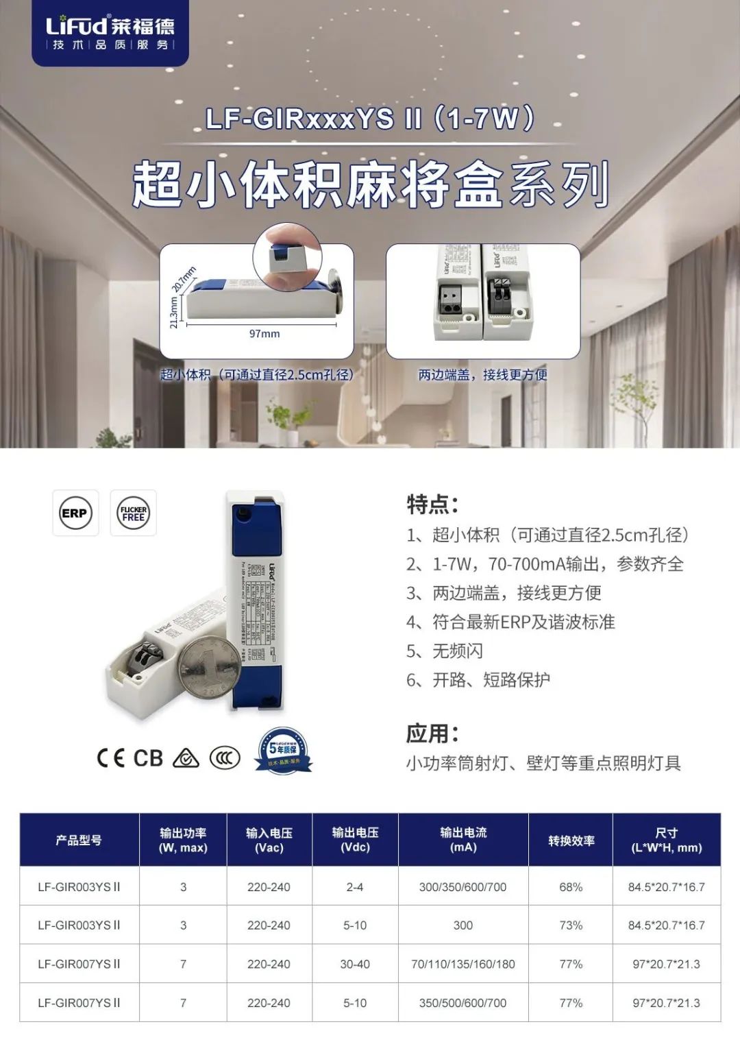 相比麻將盒1代,此次升級不僅優化了產品效率及性能,滿足最新ERP及諧波標準,還在保證可通過25mm迷你燈具安裝孔位的前提下,加入接線端口,便于產品安裝應用。