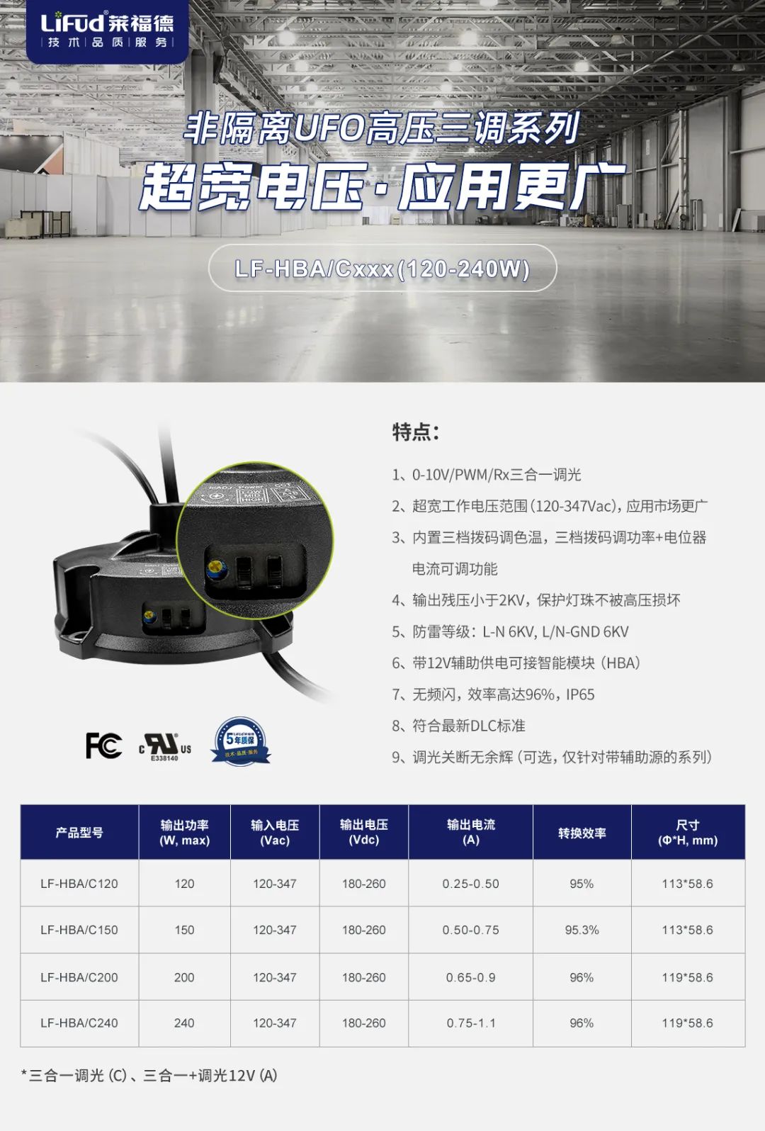 除常規寬壓,2022年萊福德針對高壓應用市場推出120-347Vac輸入非隔離UFO,為客戶提供更多應用選擇。