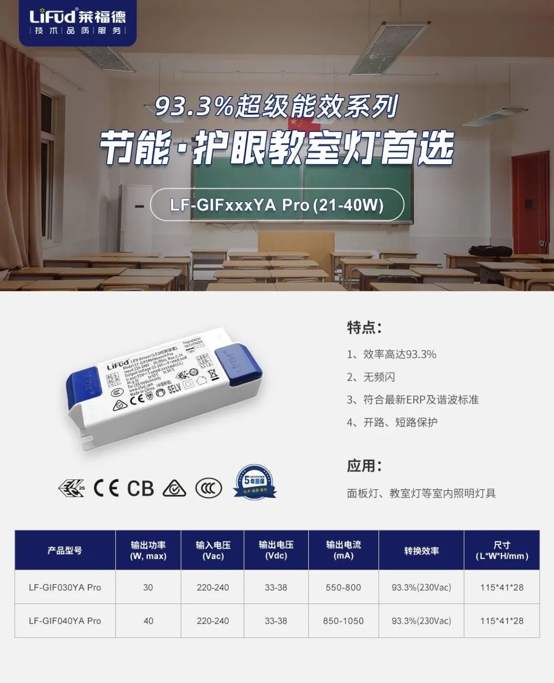 萊福德教室照明專用電源之一,作為常規高效的代表系列,本次升級優化設計方案,進一步提高產品效率,助力教室照明健康節能!