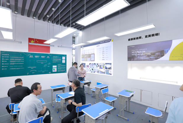 教室燈光的場景化再現,則讓參展嘉賓近距離感受宜美照明用心打造的智能控光技術,使黑板燈和教室燈會根據教室光線的明暗程度自動調節,無論是晴天、陰天,還是傍晚,始終保持室內均勻的照度。此外,上課、下課、自習、投影、午休和放學六大模式,也在現場吸引了眾多參觀者駐足體驗。