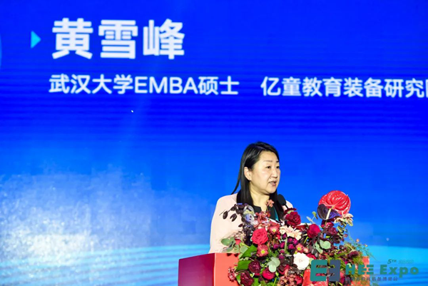 武漢大學EMBA碩士、億童教育裝備研究院副院長黃雪峰出席論壇并致辭。她表示,近幾年我國的學前教育正朝著普及普惠安全優質的方向快速進步。去年2月份,教育部頒發了《幼兒園保育教育質量評估指南》,這標志著我國學前教育進入了高質量發展的新階段。幼兒園保育教育質量的提升離不開優質的教育裝備,也可以說,優質的教育裝備是我國幼兒園孩子的教科書,在這樣的背景下,河南省緊跟國家形勢,召開本次論壇具有非常深遠的意義。