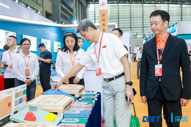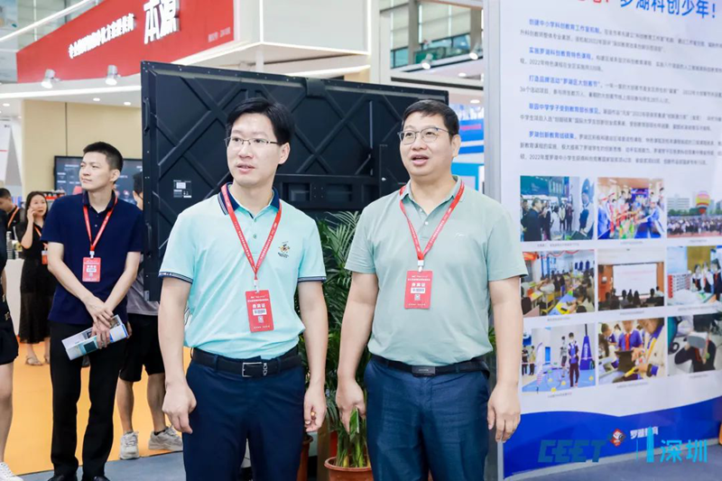 9月15日,深圳市委教育工委委員,市教育局黨組成員、副局長趙立巡展,深圳市教育裝備行業協會會長彭錦環陪同巡展。
