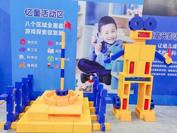 此次在盛會中展出的沙水探究區、億童戶外游戲區、億童扭扭建構(大型版)、億童活動區、億童語言區、億童數學區、億童光影游戲區、炫彩建構等優質學前教育裝備收獲大量好評,大家紛紛向億童工作人員了解、詢問產品細節及培訓服務,展位現場人頭攢動,熱鬧非凡。