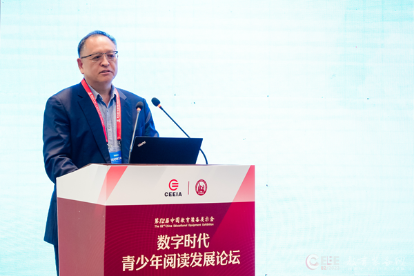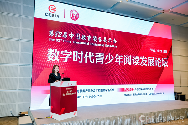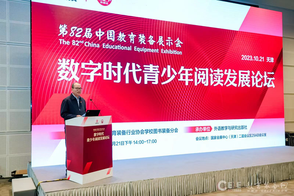 10月21日下午,由中國(guó)教育裝備行業(yè)協(xié)會(huì)主辦,外語(yǔ)教學(xué)與研究出版社承辦的數(shù)字時(shí)代青少年閱讀發(fā)展論壇在第82屆中國(guó)教育裝備展示會(huì)期間舉辦。論壇采用線(xiàn)上線(xiàn)下同步直播方式進(jìn)行,近5000人線(xiàn)上參會(huì)。
