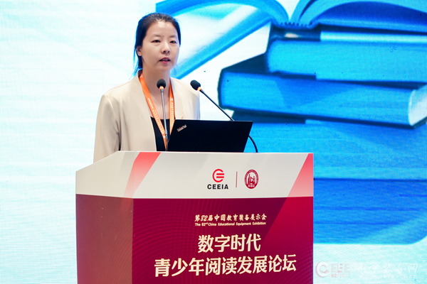中國(guó)教育裝備行業(yè)協(xié)會(huì)副會(huì)長(zhǎng)王強(qiáng)出席論壇并致辭。他表示,近年來(lái)國(guó)家在教育數(shù)字化方面取得了豐厚的成果。數(shù)字技術(shù)的廣泛使用,讓教育和閱讀更為便利,青少年閱讀的選擇日趨曾多,與此同時(shí),青少年閱讀也出現(xiàn)了一些新的挑戰(zhàn)。在數(shù)字時(shí)代,我們需要關(guān)注青少年閱讀發(fā)展的新問(wèn)題和新需求,積極探索數(shù)字化閱讀與傳統(tǒng)閱讀的有機(jī)結(jié)合,推動(dòng)青少年閱讀的全面發(fā)展。
