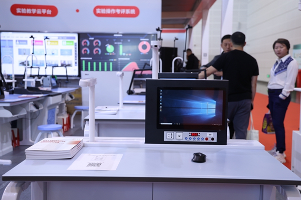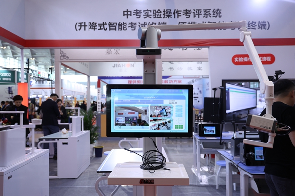 本次展會(huì),廣視通攜AI中考實(shí)驗(yàn)考場(chǎng)(升降式智能考試終端)、AI實(shí)驗(yàn)室控制中心、可視化實(shí)訓(xùn)示教儀等新產(chǎn)品亮相。