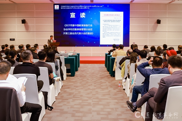 2023年10月19日上午,中國教育裝備行業協會學校后勤裝備管理分會第三次會員代表大會暨新技術賦能新時代學校后勤發展成果推介會在天津召開。