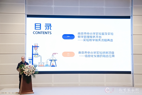 專家學(xué)術(shù)報(bào)告與經(jīng)驗(yàn)交流環(huán)節(jié),中國(guó)教育裝備行業(yè)協(xié)會(huì)教育裝備研究院副院長(zhǎng)施建國(guó)、湖州市教育技術(shù)學(xué)會(huì)會(huì)長(zhǎng)沈建康、湖南省教育生產(chǎn)裝備處主任張萬(wàn)敏、天津市第二南開學(xué)校副校長(zhǎng)、高級(jí)教師尤瑞冬、南京教育技術(shù)裝備中心主任鄧中材分別作主題為“新課標(biāo)背景下的實(shí)驗(yàn)教學(xué)創(chuàng)新”、“常態(tài)化實(shí)驗(yàn)教學(xué)的實(shí)踐與認(rèn)識(shí)”、“聚焦’三不’問題,促進(jìn)實(shí)驗(yàn)教學(xué)高質(zhì)量發(fā)展”、 “勤反思敬終如始 積踐步善作善成——天津市第二南開學(xué)校實(shí)驗(yàn)室危化品管理使用情況報(bào)告”、“南京市中小學(xué)實(shí)驗(yàn)室數(shù)字化場(chǎng)景重構(gòu)及應(yīng)用”的報(bào)告。