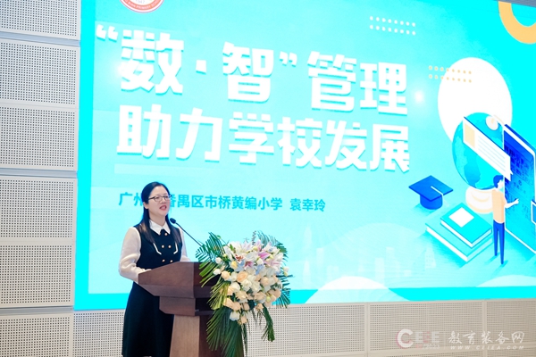 廣州市番禺區(qū)市橋黃編小學(xué)校長(zhǎng)袁幸玲作關(guān)于《“數(shù)•智”管理 助力學(xué)校發(fā)展》的優(yōu)秀案例分享