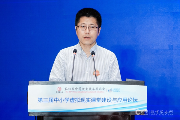 丁新解讀教育信息化裝備分會虛擬現(xiàn)實(shí)工作組相關(guān)工作并發(fā)布《中小學(xué)教師虛擬現(xiàn)實(shí)教學(xué)應(yīng)用能力培訓(xùn)方案(2024)》。該培訓(xùn)方案包含通識性課程、學(xué)科教師培訓(xùn)課程以及中小學(xué)生操作課程,能夠幫助廣大教師掌握虛擬現(xiàn)實(shí)在教育教學(xué)中的應(yīng)用策略和實(shí)踐方法。