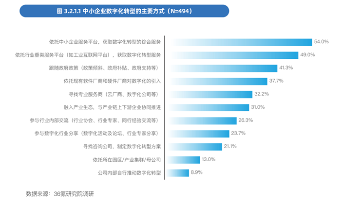 與這一需求相對應,依托一站式服務平臺進行轉型的方式成為主流。其中,54%的中小企業選擇綜合型一站式服務平臺,如聯想百應。