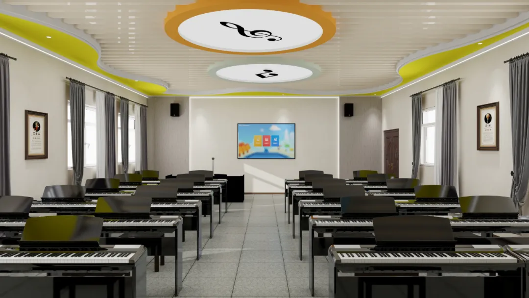 金三惠電鋼琴教室配備了電鋼琴控制管理系統、電鋼琴、指法教學儀、教師終端和學生終端等設備,集成了視覺、聽覺、練習等多種功能,以可視化電鋼教學為核心,集電鋼控制、教師示范、學生演奏練習、教師監聽講評于一體,使教師可以更便捷的進行集體、小組或一對一授課,學生也可以通過教師演示講解,有效進行獨奏、合奏、齊奏等多種形式的練習,