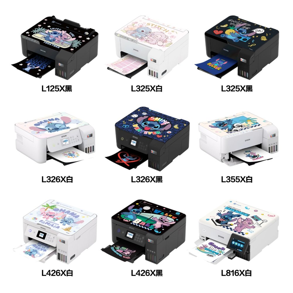 愛(ài)普生迪士尼史迪奇系列合作款機(jī)身貼膜畫(huà)面既有史迪奇活潑萌趣的經(jīng)典畫(huà)面,又有史迪奇與安琪同框的有愛(ài)時(shí)刻,可愛(ài)又溫馨;本次還特別推出兩種“閃亮款”貼膜,適用于墨倉(cāng)式®彩色無(wú)線多功能一體機(jī)L426X,局部燙金與鐳射工藝讓這兩款貼膜更加“閃閃惹人愛(ài)”。合作款墨倉(cāng)式®打印機(jī)型號(hào)豐富,從入門(mén)級(jí)家用到高品質(zhì)6色墨倉(cāng)式®,能滿足多種家庭及小型商用的打印需求,搭配史迪奇系列機(jī)身貼膜,打印機(jī)顏值直接到達(dá)next level,即刻開(kāi)啟奇趣體驗(yàn)。