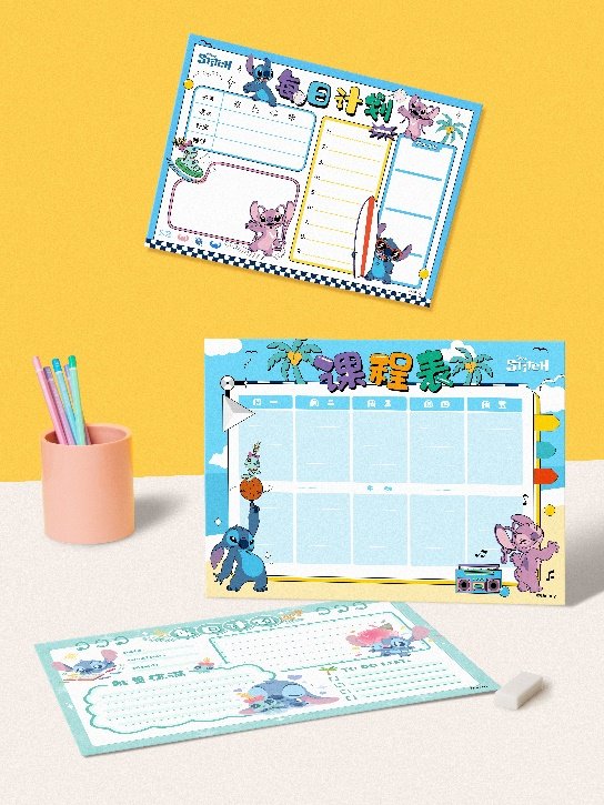 陽(yáng)光活力課程/計(jì)劃表、繽紛趣玩涂色卡和多彩奇妙作業(yè)紙是家庭學(xué)習(xí)與培養(yǎng)興趣愛(ài)好的好幫手。小朋友在學(xué)習(xí)之余不論是想和史迪奇同框耍帥,又或是與安琪一起甜美可愛(ài),史迪奇相伴相框都能滿足。