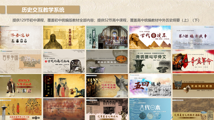 歷史交互教學(xué)系統(tǒng)遵循義務(wù)教育歷史新課標、普通高中歷史新課標的要求,緊跟統(tǒng)編版教材,配有地圖、導(dǎo)圖、文字史料、圖片、視頻等多種形式歷史資源;為歷史老師提供歷史學(xué)科精品資源,提供豐富易用的授課包、學(xué)科特色思維導(dǎo)圖工具和時間導(dǎo)圖工具,提供的精品資源可在系統(tǒng)平臺中編輯備課。
