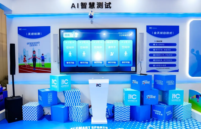 展會期間,itc特設AI智慧體育打卡專區,現場觀眾可以近距離體驗AI智慧測試、AI智慧體鍛、AI智慧教學等itcAI智慧體育系統核心功能,觀眾參觀體驗集章打卡即可獲得精美禮品。AI智慧測試,通過AI攝像頭捕捉現場體驗者運動過程,實現運動成績識別、違規動作識別、運動過程分析等功能,參加者無需穿戴設備,通過人臉識別,舉手即可開始測試。AI智慧體鍛,AI自動視頻采集識別體育鍛煉數據,集玩耍與鍛煉于一體,寓教于樂。