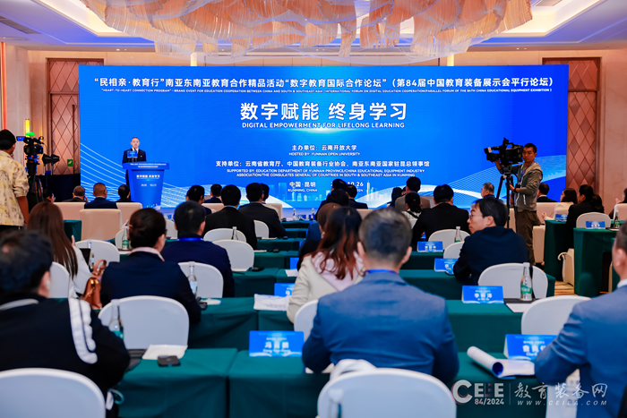 在云南省教育廳、中國教育裝備行業(yè)協(xié)會、南亞東南亞國家駐昆總領(lǐng)事館的支持下,由云南開放大學(xué)主辦的“‘民相親·教育行’南亞東南亞教育合作精品活動——數(shù)字教育國際合作論壇”于10月26日在昆明滇池國際會議中心舉辦。本次論壇作為“第84屆中國教育裝備展示會”的平行論壇同期舉辦。