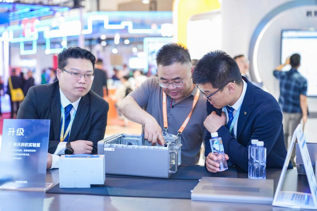 希沃帶來(lái)AI升級(jí)計(jì)算終端,打造出“更懂老師的電腦”。希沃首款榫卯架構(gòu)的計(jì)算機(jī)終端是現(xiàn)場(chǎng)的看點(diǎn)。據(jù)悉,希沃自研“榫卯”的機(jī)箱架構(gòu),采用了獨(dú)特的榫卯架構(gòu),通過(guò)模塊化設(shè)計(jì)實(shí)現(xiàn)“免工具”維護(hù),大幅降低設(shè)備維護(hù)成本。希沃商用計(jì)算機(jī)副總經(jīng)理郭瀟介紹這款明星產(chǎn)品:“我們帶來(lái)的榫卯機(jī)器可不借助工具,徒手完成拆改。有藍(lán)色標(biāo)識(shí)的地方都可以直接插拔的,這樣讓整個(gè)維護(hù)工作變得非常簡(jiǎn)單。”