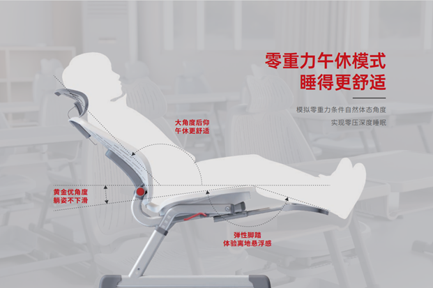 立達(dá)信護(hù)脊健康課桌椅通過(guò)人體工學(xué)設(shè)計(jì)、全包裹桌椅設(shè)計(jì),貼合學(xué)生脊柱成長(zhǎng)曲線。針對(duì)學(xué)生聽課場(chǎng)景,通過(guò)靠背、坐墊的人機(jī)曲度設(shè)計(jì),舒緩脊柱壓力,靠背的全包裹式支撐,輔助維持坐姿中正平衡,預(yù)防脊柱側(cè)彎;針對(duì)書寫學(xué)習(xí)場(chǎng)景,桌面的黃金C角設(shè)計(jì)可以很好地引導(dǎo)學(xué)生居中坐姿,肘部弧度支撐緩解書寫疲勞,雙色分區(qū)設(shè)計(jì),讓孩子養(yǎng)成正確的學(xué)習(xí)姿態(tài),護(hù)眼又護(hù)脊;針對(duì)中午休息場(chǎng)景,護(hù)脊課桌椅可一鍵靜音操作,1秒從坐切換到躺,坐墊同時(shí)后仰一定角度,防止身體下滑,即使午睡也能保持好姿態(tài),頭枕和腿托也可根據(jù)身高調(diào)節(jié),舒適方便。