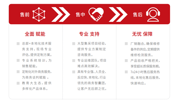 服務(wù)方面,公司堅(jiān)持售前全面賦能,總部+本地化技術(shù)服務(wù)支持,現(xiàn)場(chǎng)專業(yè)評(píng)估,提供定制方案,提供多樣化產(chǎn)品體系;售中專業(yè)支持,提供專業(yè)方案制定咨詢服務(wù);專業(yè)運(yùn)維團(tuán)隊(duì),項(xiàng)目難點(diǎn)高效解決;具有專業(yè)強(qiáng)、人員全、反應(yīng)快、本地化、行業(yè)領(lǐng)先的商務(wù)智囊團(tuán),讓客戶無(wú)后顧之憂;售后無(wú)憂保障,廠銷融合,確保維修備件的供應(yīng),定期提供維修檢測(cè)服務(wù);產(chǎn)品驗(yàn)收嚴(yán)格把關(guān),享受超長(zhǎng)質(zhì)保服務(wù)期;7x24小時(shí)售后服務(wù)熱線,本地化售后服務(wù),快速響應(yīng)。