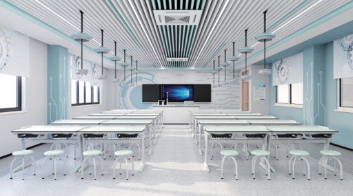 碟形氛圍燈搭配藍色光影營造未來感教學空間,多功能電源供應裝置支持高低壓、交直流等多種接口,USB擴展設計兼容各類智能設備。液晶觸控顯示屏實時顯示運行數(shù)據,防誤觸保護與高度自由調節(jié)適配不同身高學生。在第83屆中國教育裝備展示會上,該系統(tǒng)憑借“全場景安全防護+個性化教學支持”的特性,成為現(xiàn)場教育裝備觀摩的亮點。