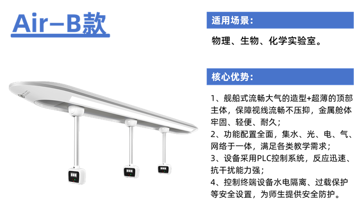 針對(duì)傳統(tǒng)實(shí)驗(yàn)室地面管線(xiàn)復(fù)雜、空間利用率低的痛點(diǎn),該系統(tǒng)在硬件上采用模塊化吊頂單元,集成水、電、氣、通風(fēng)管道,搭配地面靈活布局,讓空間利用率提升40%;軟件平臺(tái)開(kāi)發(fā)了智能化控制系統(tǒng),教師端可一鍵控制設(shè)備啟停、環(huán)境調(diào)節(jié)和數(shù)據(jù)采集,兼容多終端交互;安全設(shè)計(jì)上,通過(guò)水電隔離和緊急斷電保護(hù)等功能,使事故率降低90%。