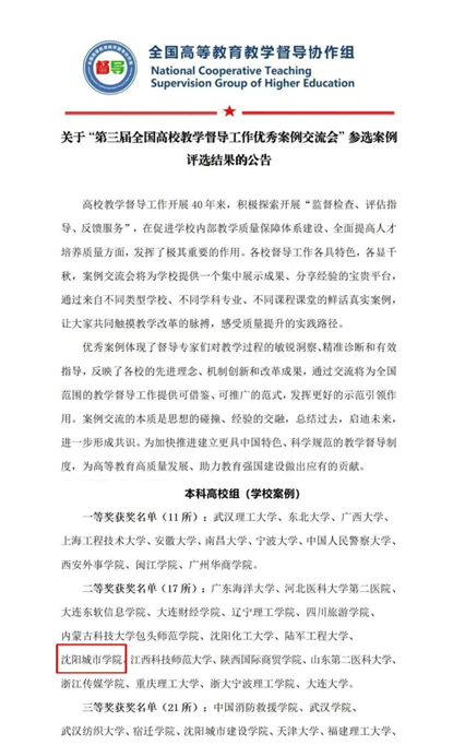 在近日舉行的第三屆全國高校教學督導工作優秀案例交流會上,沈陽城市學院憑借其創新性的《以“3241”保障體系為指引,培養高素質應用型人才》案例,一舉摘得本科高校組二等獎!這份沉甸甸的榮譽,不僅是對學院教育教學質量的高度認可,更是其與教育科技伙伴——文香深度合作、共探教育現代化的閃亮勛章。