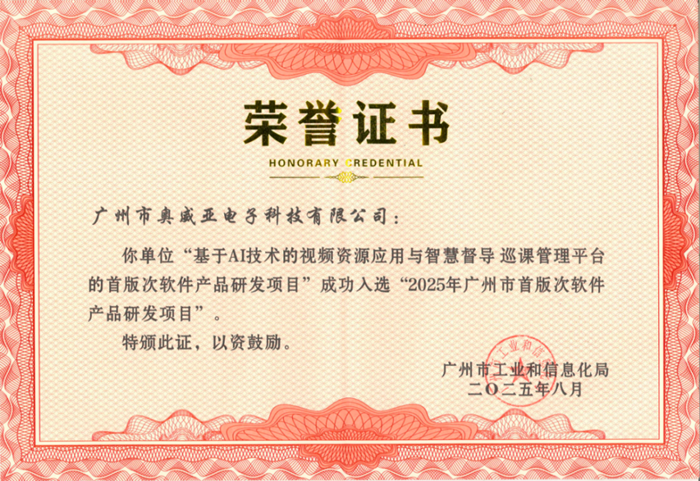 日前,國新文化所屬奧威亞公司“基于AI技術的視頻資源應用與智慧督導巡課管理平臺”入選2025年廣州市首版次軟件產品研發項目(人工智能和信息安全軟件方向)。