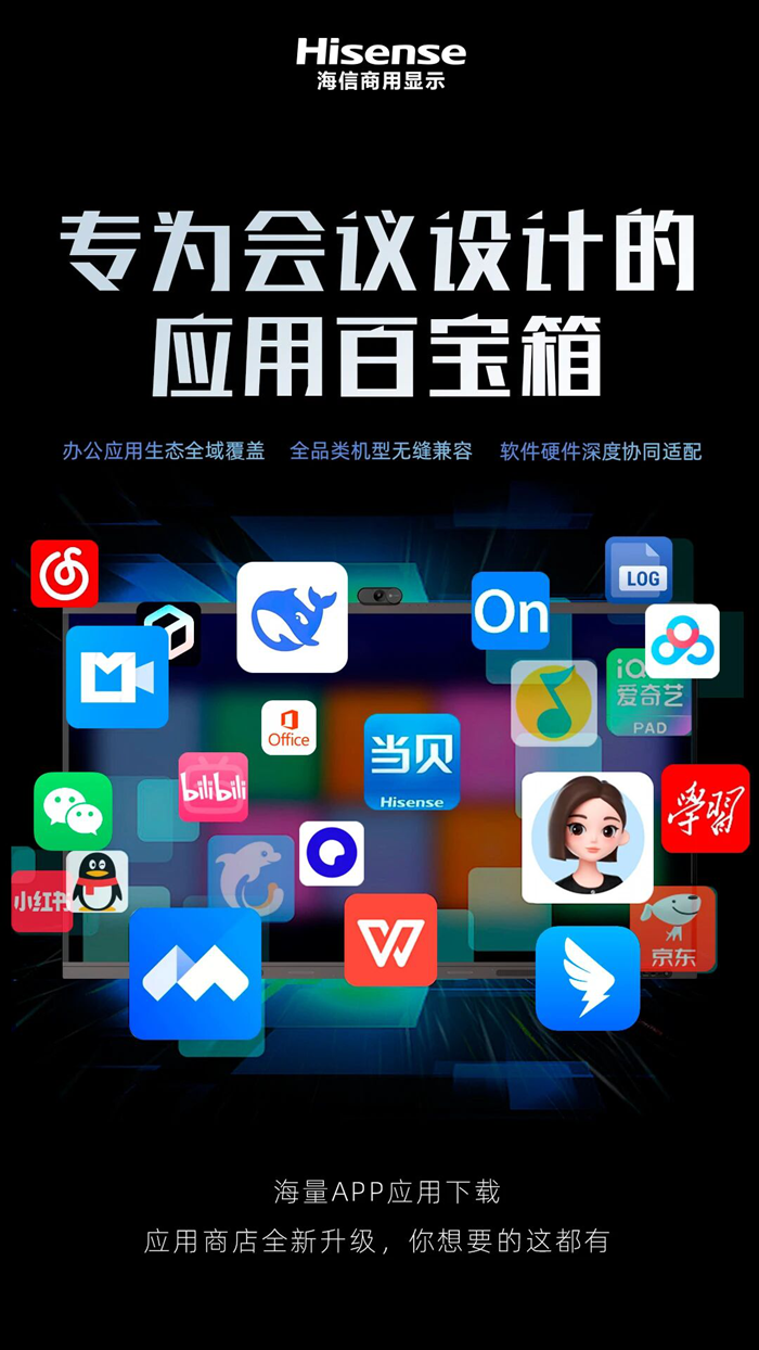 此次應用軟件上新覆蓋海信會議平板、會議電視全系列上市機型,無論您使用的是輕量級入門款還是旗艦級智能終端,均可一鍵同步應用生態 —— 只需打開設備內置應用商店,即可快速獲取專屬適配版本。