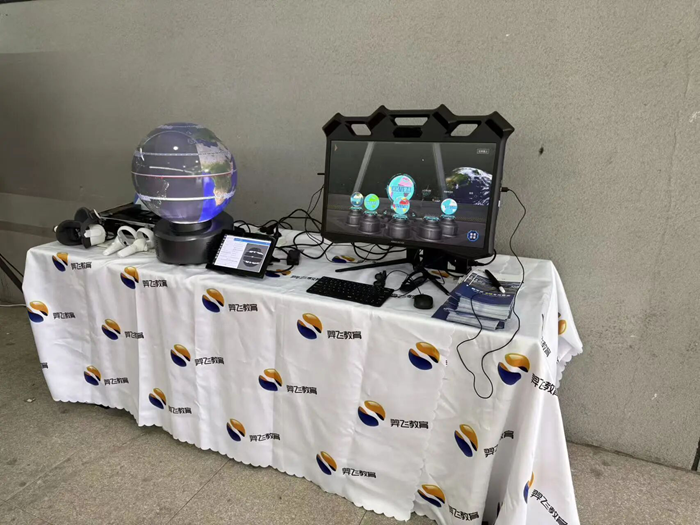 在羿飛教育展位上,數(shù)字模型、乾輿經(jīng)緯地理教學系統(tǒng)、智能數(shù)字地球演示儀、VR地理教學系統(tǒng)等創(chuàng)新產(chǎn)品成為全場焦點。數(shù)字模型利用鍍膜玻璃對光的折射和反射原理,把虛像投影到成像空間,通過精調(diào)三個面的成像融合,形成“實像”,給人一種“物在其中”的真實感覺。;乾輿經(jīng)緯地理教學系統(tǒng)是羿飛教育依托現(xiàn)行中學地理教學知識目錄體系所打造的一款以3D模型為基礎(chǔ)的桌面VR交互式教學系統(tǒng)。讓枯燥的地理知識點變成觸手可及的虛擬現(xiàn)實影像,提高了獲取知識的交互性與趣味性,讓學生在身臨其境的自主探索中吸收轉(zhuǎn)化中學地理教學中的重點、難點;智能數(shù)字地球演示儀突破傳統(tǒng)地球儀的平面局限,通過3D建模與動態(tài)演示技術(shù),直觀呈現(xiàn)地球自轉(zhuǎn)、公轉(zhuǎn)、板塊運動等地理知識,讓抽象概念變得可觸可感;VR地理教學系統(tǒng)則通過虛擬現(xiàn)實技術(shù),讓學生“身臨其境”探索世界各地的地理景觀,大幅提升學習的沉浸感與趣味性。