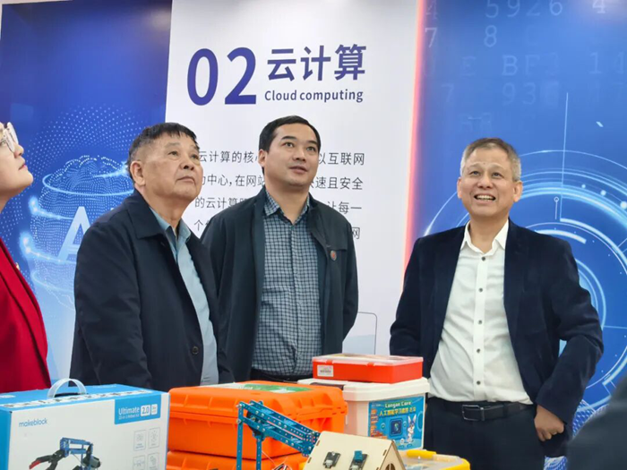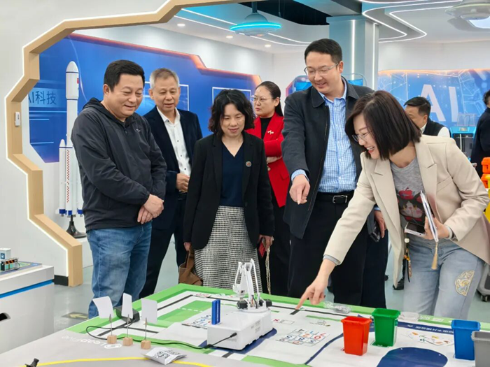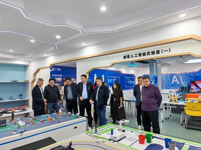 座談會(huì)結(jié)束后,在陳登貴董事長(zhǎng)的陪同下,協(xié)會(huì)領(lǐng)導(dǎo)一行走進(jìn)了廣視通教育裝備數(shù)字化展廳,近距離觀摩廣視通的核心產(chǎn)品與解決方案,對(duì)公司深耕教育裝備領(lǐng)域的成果表示肯定,并對(duì)產(chǎn)品的創(chuàng)新性、實(shí)用性以及在推動(dòng)教育數(shù)字化發(fā)展中的積極作用給予高度評(píng)價(jià)。