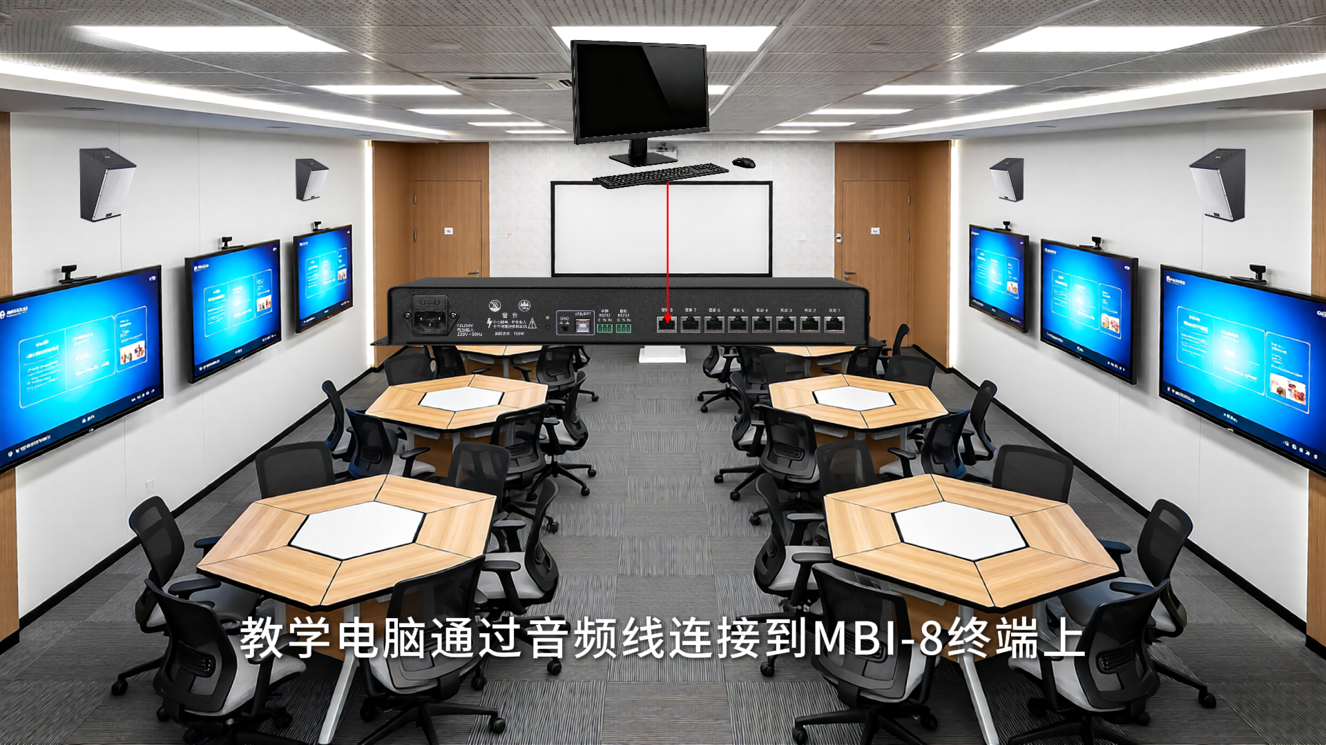 分布式無線話筒智能管家|分組研討型智慧教室場景一:設(shè)備裝在講臺機(jī)柜里